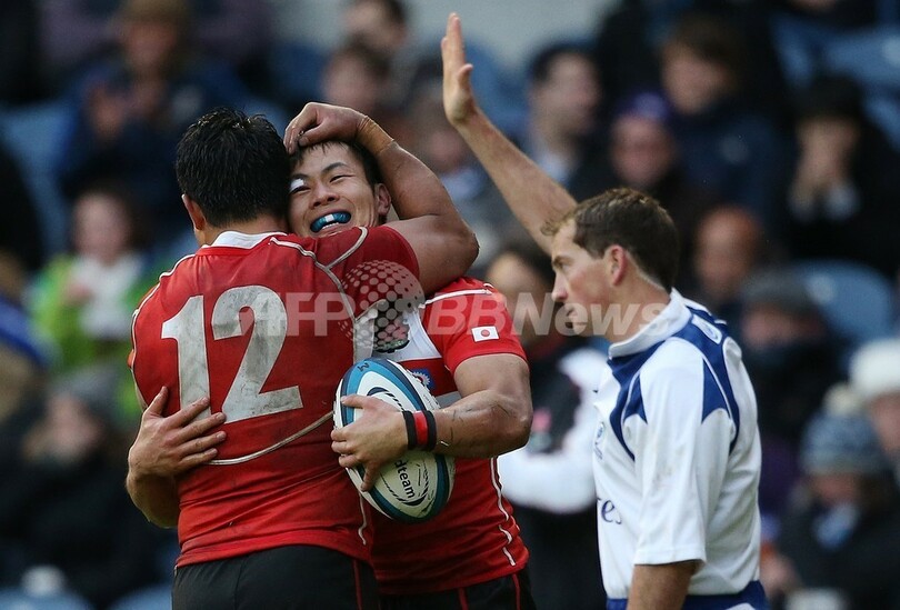 そしてスコットランドは途中出場のウィアーが追加点を挙げたあと、試合時間残り2分としたところでラモントのトライ、そしてウィアーのコンバージョンが決まり、日本を寄せ付けなかった。(c)AFP