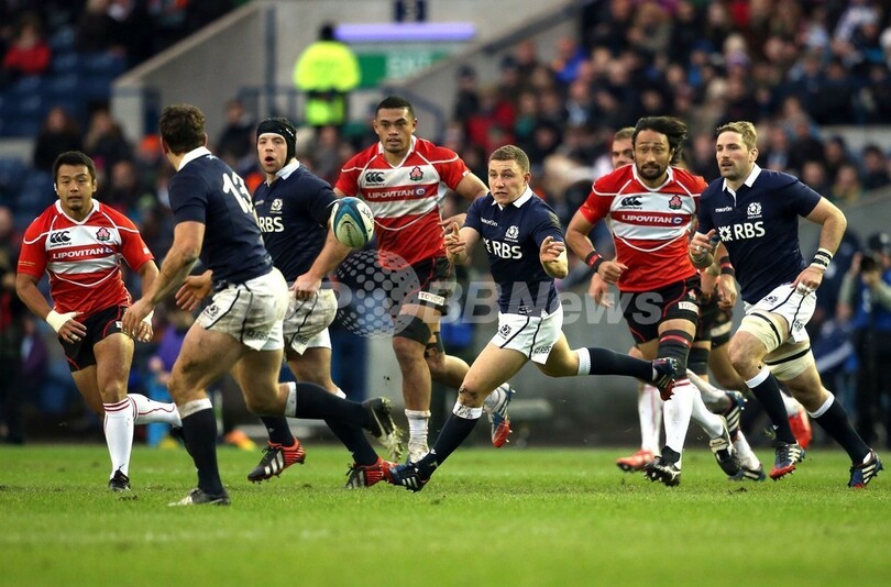 そしてスコットランドは途中出場のウィアーが追加点を挙げたあと、試合時間残り2分としたところでラモントのトライ、そしてウィアーのコンバージョンが決まり、日本を寄せ付けなかった。(c)AFP