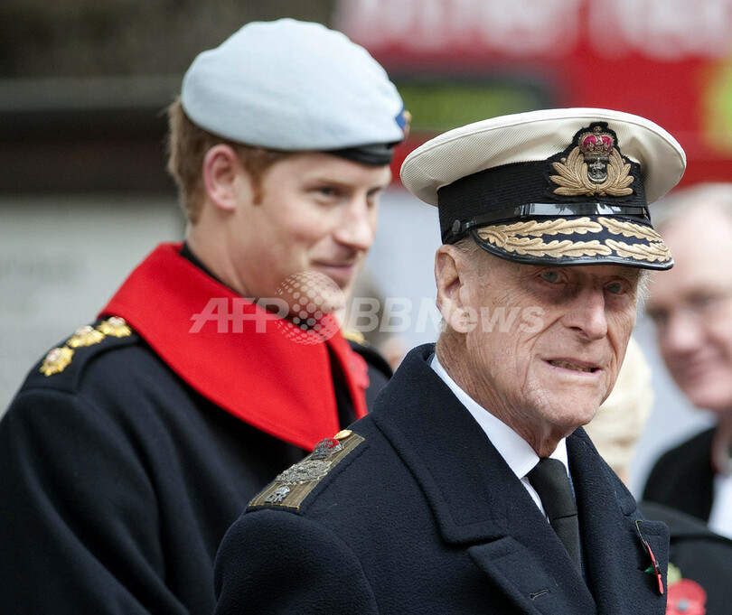 一方、ヘンリー王子とフィリップ殿下は、 ロンドンのウェストミンスター寺院(Westminster Abbey)で行われた式典に出席した。リメンバランス・サンデーは第1次世界大戦の休戦記念日(Armistice Day)に最も近い日曜日で、今年は11月10日に当たる。(c)AFP