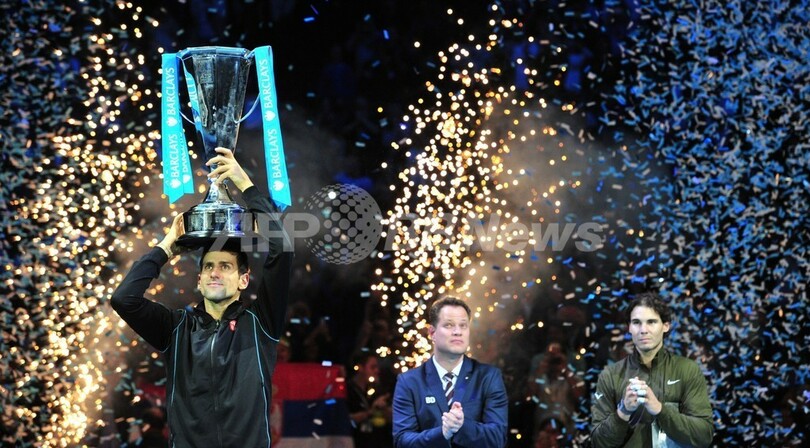 【11月12日 AFP】男子テニス、ATPワールドツアー・ファイナル(ATP World Tour Finals 2013)は11日、ロンドン(London)のO2アリーナ(O2 Arena)で決勝が行われ、大会第2シードのノバク・ジョコビッチ(Novak Djokovic、セルビア)は6-3、6-4で第1シードのラファエル・ナダル(Rafael Nadal、スペイン)を下し、優勝を飾った。