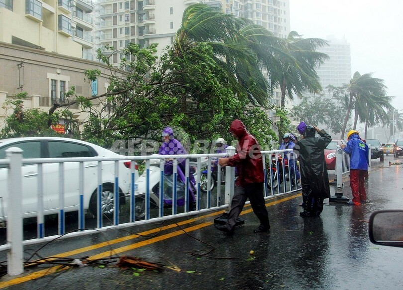 また、中国民政部によると、強風と豪雨により、住宅600戸近くが損壊し、51戸が倒壊、海南省では3万9000人が避難した。(c)AFP