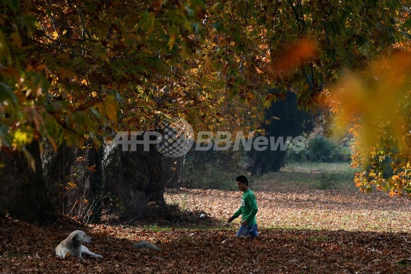 【11月12日 AFP】インド北部ジャム・カシミール(Jammu and Kashmir)州の夏の州都であるスリナガル(Srinagar)では11日、冬の到来が間近に迫り刻々と日が短くなる中、人々は美しく色づく木々の下で思い思いに秋の余韻を楽しんだ。(c)AFP