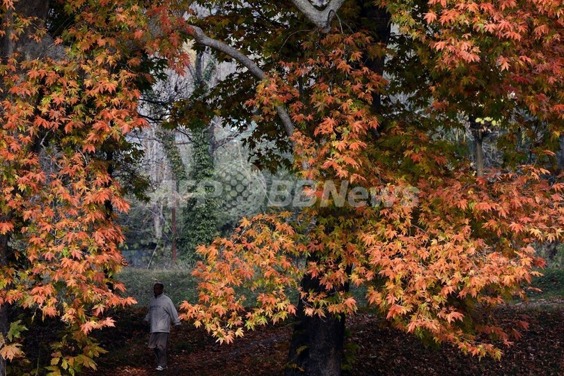 【11月12日 AFP】インド北部ジャム・カシミール(Jammu and Kashmir)州の夏の州都であるスリナガル(Srinagar)では11日、冬の到来が間近に迫り刻々と日が短くなる中、人々は美しく色づく木々の下で思い思いに秋の余韻を楽しんだ。(c)AFP