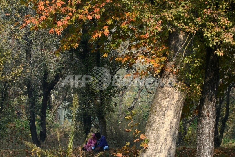 【11月12日 AFP】インド北部ジャム・カシミール(Jammu and Kashmir)州の夏の州都であるスリナガル(Srinagar)では11日、冬の到来が間近に迫り刻々と日が短くなる中、人々は美しく色づく木々の下で思い思いに秋の余韻を楽しんだ。(c)AFP