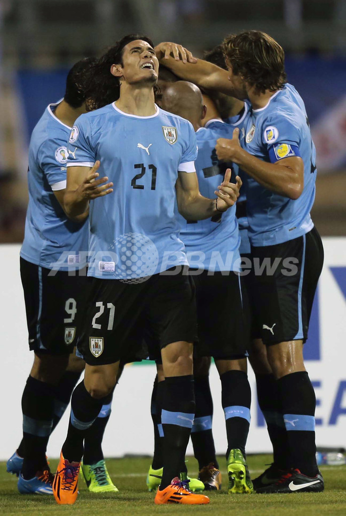 後半31分にクリスチャン・ロドリゲス(Cristian Rodriguez)のハーフボレーで追加点を挙げたウルグアイは、終了直前のロスタイムにカヴァーニが素晴らしい直接FKを決め、試合を締めくくった。(c)AFP