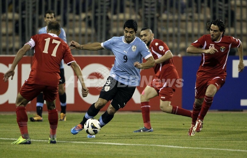 【11月14日 AFP】2014年サッカーW杯ブラジル大会(2014 World Cup)の大陸間プレーオフ第1戦が13日、アンマン(Amman)で行われ、ウルグアイが5-0でヨルダンに先勝し、来年のW杯進出をほぼ確実にした。