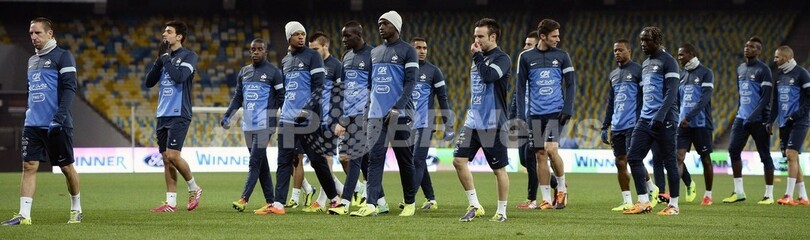 【11月15日 AFP】2014年サッカーW杯ブラジル大会(2014 World Cup)欧州予選プレーオフを控えるフランス代表は14日、ウクライナ代表との第1戦へ向けてキエフ(Kiev)のオリンピックスタジアム(Olympic stadium)で最終調整を行った。(c)AFP