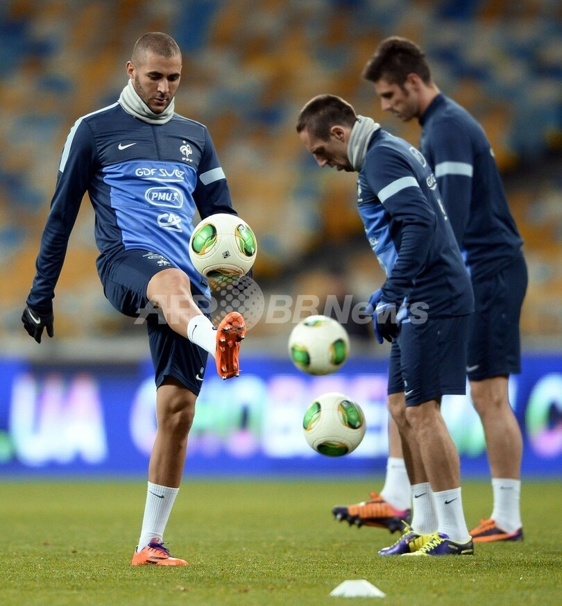 【11月15日 AFP】2014年サッカーW杯ブラジル大会(2014 World Cup)欧州予選プレーオフを控えるフランス代表は14日、ウクライナ代表との第1戦へ向けてキエフ(Kiev)のオリンピックスタジアム(Olympic stadium)で最終調整を行った。(c)AFP