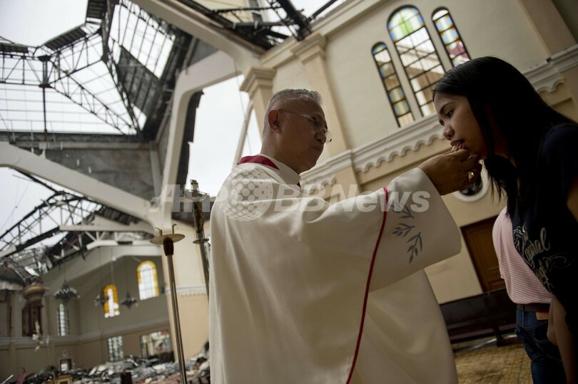 【11月17日 AFP】フィリピンでは17日、超大型の台風30号(アジア名:ハイエン、Haiyan)の被災者らが、台風で損壊した各地のカトリック教会で日曜礼拝に参加した。