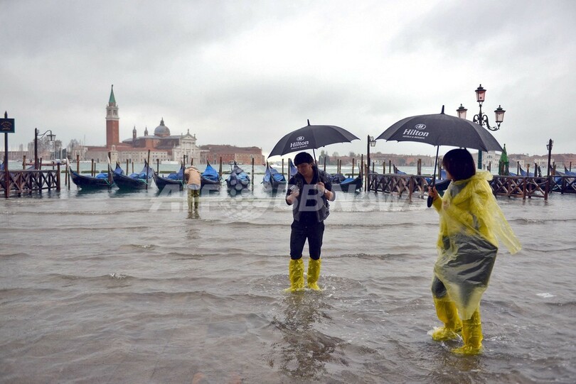 【11月20日 AFP】イタリア・ベネチア(Venice)では19日、強い風雨と高潮とが重なって起きる潮位の上昇現象「アクアアルタ(Acqua alta)」が発生し、市内の観光名所サン・マルコ広場(Saint Mark's Square)が冠水した。(c)AFP