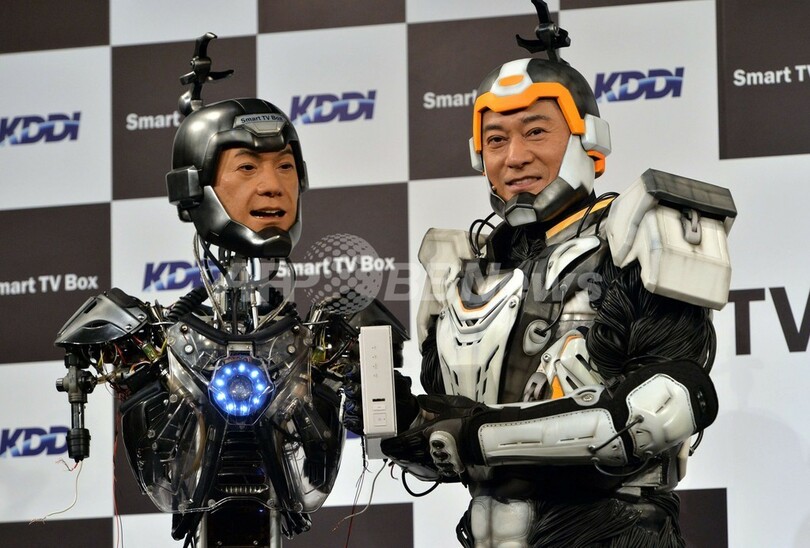 【11月20日 AFP】携帯電話会社KDDIのメディア向けイベントが19日、都内で開催され、ロボットスーツに身を包んだ俳優の松平健(Ken Matsudaira)さんが自分とそっくりなロボット「リアル・アンドロイド・マツケン(Real Android Matsuken)」と対面した。(c)AFP