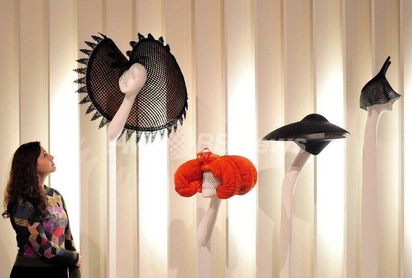この展覧会では、アレキサンダー・マックイーン(Alexander McQueen)や帽子デザイナーのフィリップ・トレーシー(Philip Treacy)など、イザベラが見出した数々の著名デザイナーが手がけた貴重な初期の作品も展示されている。会期は2014年3月2日まで。(c)AFP