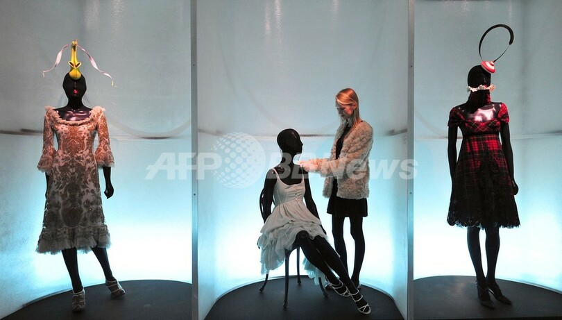 この展覧会では、アレキサンダー・マックイーン(Alexander McQueen)や帽子デザイナーのフィリップ・トレーシー(Philip Treacy)など、イザベラが見出した数々の著名デザイナーが手がけた貴重な初期の作品も展示されている。会期は2014年3月2日まで。(c)AFP