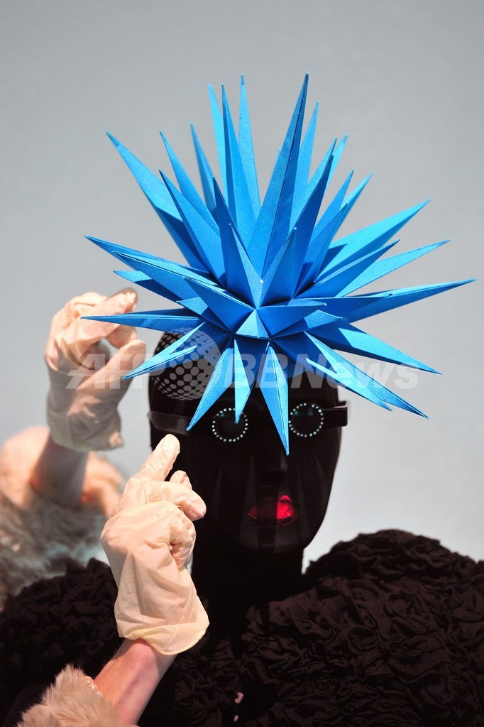 この展覧会では、アレキサンダー・マックイーン(Alexander McQueen)や帽子デザイナーのフィリップ・トレーシー(Philip Treacy)など、イザベラが見出した数々の著名デザイナーが手がけた貴重な初期の作品も展示されている。会期は2014年3月2日まで。(c)AFP