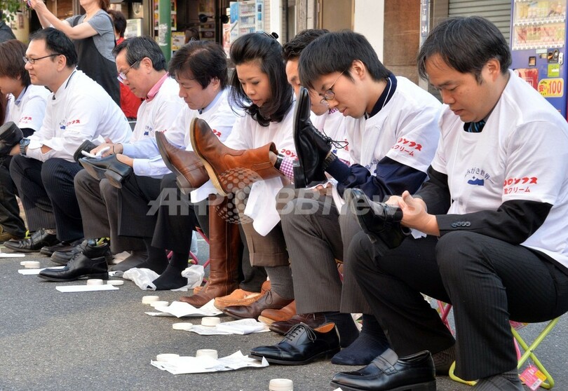 【11月23日 AFP】靴メーカーなど靴関連会社が多いことで知られる東京都台東区のアサヒ商店街(Asahi Shopping Street)で22日、800人余りが参加して一斉に靴を磨く人数のギネス世界記録(Guinness World Records)の更新に挑戦した。2011年にアラブ首長国連邦で打ち立てられたこれまでの記録(451人)を破り、見事に新記録を達成した。(c)AFP