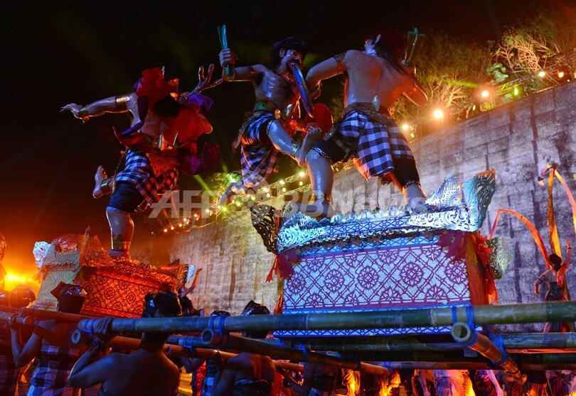【11月25日 AFP】インドネシア・バリ(Bali)島のジンバラン(Jimbaran)で24日、文化施設ガルーダ・ヴィシュヌ・クンチャナ(Garuda Wisnu Kencana)を舞台に、ワールド・カルチャー・パレード(World Culture Parade)が開催された。24日から27日まで開かれる世界文化フォーラム(World Culture Forum)の一環であるこのイベントには、バリ島にあるインドネシア国立芸術大学(Indonesian Art Institute)に所属する700人の舞踊家たちとともに、世界各地の著名な祭りの関係者が多数参加した。(c)AFP