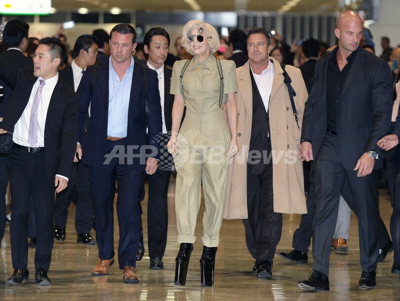 【11月26日 AFP】米人気歌手レディー・ガガ(Lady Gaga)が26日、最新アルバム「アートポップ(Artpop)」のプロモーションのため来日した。成田空港(Narita Airport)に到着したガガは、早くも詰め掛けたファンに囲まれた。(c)AFP