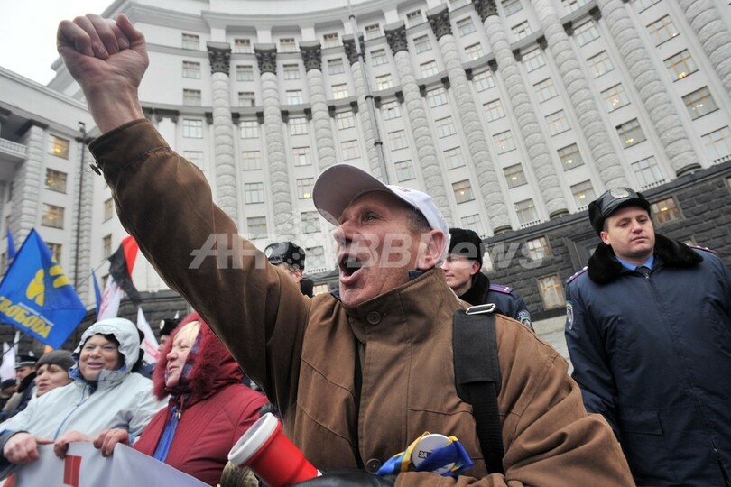 アザロフ氏のこの発言は、かつて共にソ連を構成したロシアとの関係の方を重視してEUとの歴史的な協定の締結を凍結するというウクライナの衝撃的な決定に抗議し、数千人の市民が首都キエフ(Kiev)中央に集結して3日目の大規模デモに備える中で報じられた。このデモは、同国で2004年に当時公然とロシアからの支援を受けていた政府に対し民主化を訴え、いったんは親欧米政権を誕生させた「オレンジ革命(Orange Revolution)」以来、最大規模の抗議活動となっている。