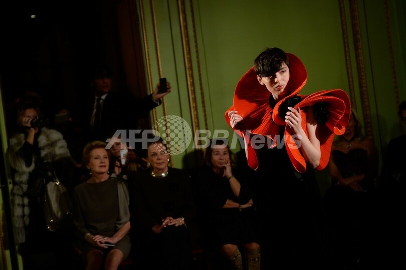 【11月27日 AFP】仏パリで26日、デザイナーのピエール・カルダン(Pierre Cardin)が、自身がオーナーを務めるカフェ「マキシム・ド・パリ」(Maxim's de Paris)でオートクチュールコレクションを発表した。(c)AFP