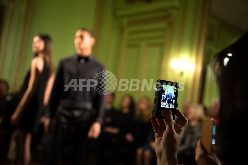 【11月27日 AFP】仏パリで26日、デザイナーのピエール・カルダン(Pierre Cardin)が、自身がオーナーを務めるカフェ「マキシム・ド・パリ」(Maxim's de Paris)でオートクチュールコレクションを発表した。(c)AFP