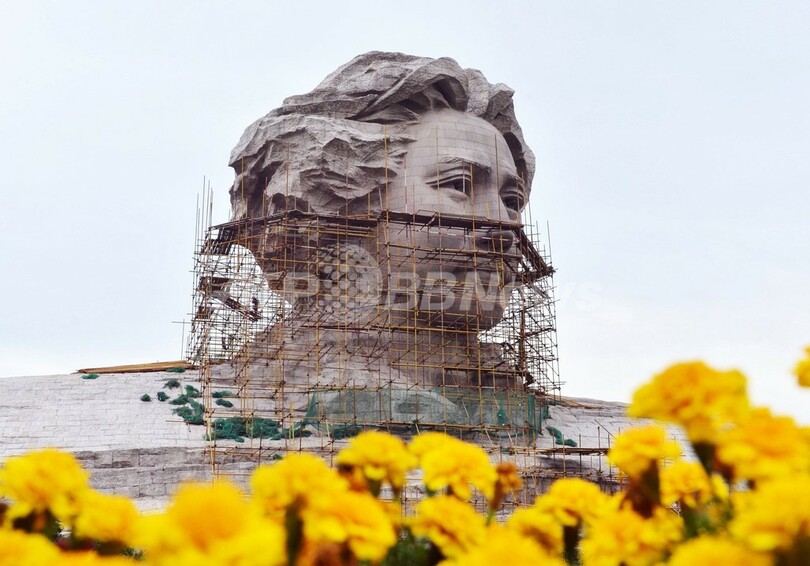 スフィンクス?巨大な毛沢東像、生誕120年前にお色直し
