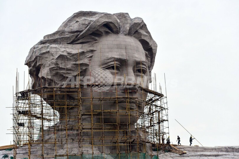 スフィンクス?巨大な毛沢東像、生誕120年前にお色直し