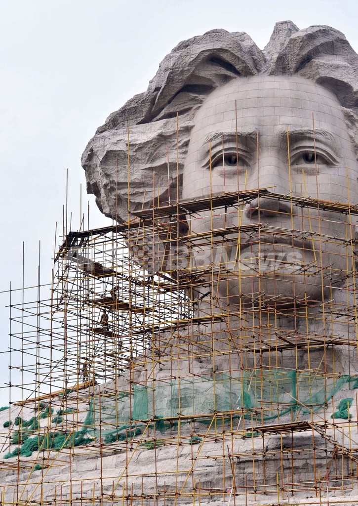 スフィンクス?巨大な毛沢東像、生誕120年前にお色直し