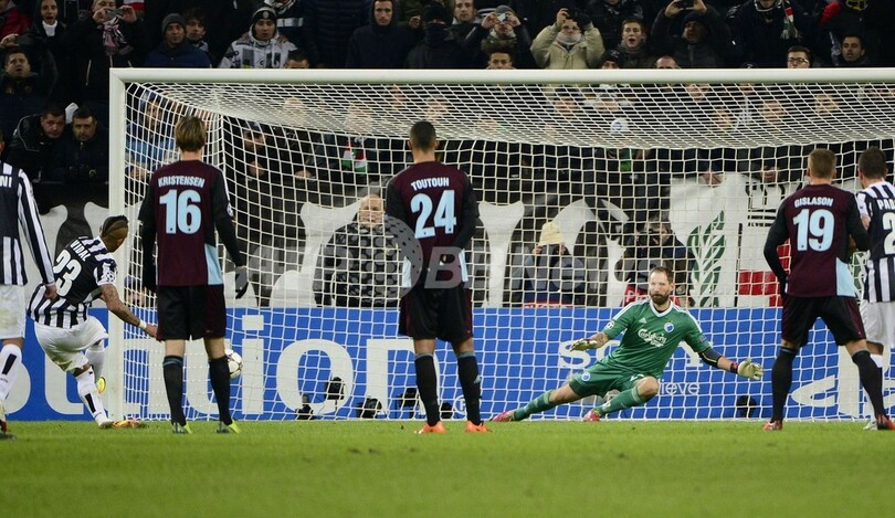 試合開始から圧倒的にコペンハーゲンを押し込んだユベントスは、前半30分を前に先制の機会を得た。ポール・ポグバ(Paul Pogba)を狙ったアンドレア・ピルロ(Andrea Pirlo)のパスに対し、コペンハーゲンの主将ラース・ヤコブセン(Lars Jacobsen)があからさまなハンドを犯すと、ヨナス・エリクソン(Jonas Eriksson)主審はペナルティースポットを指さした。