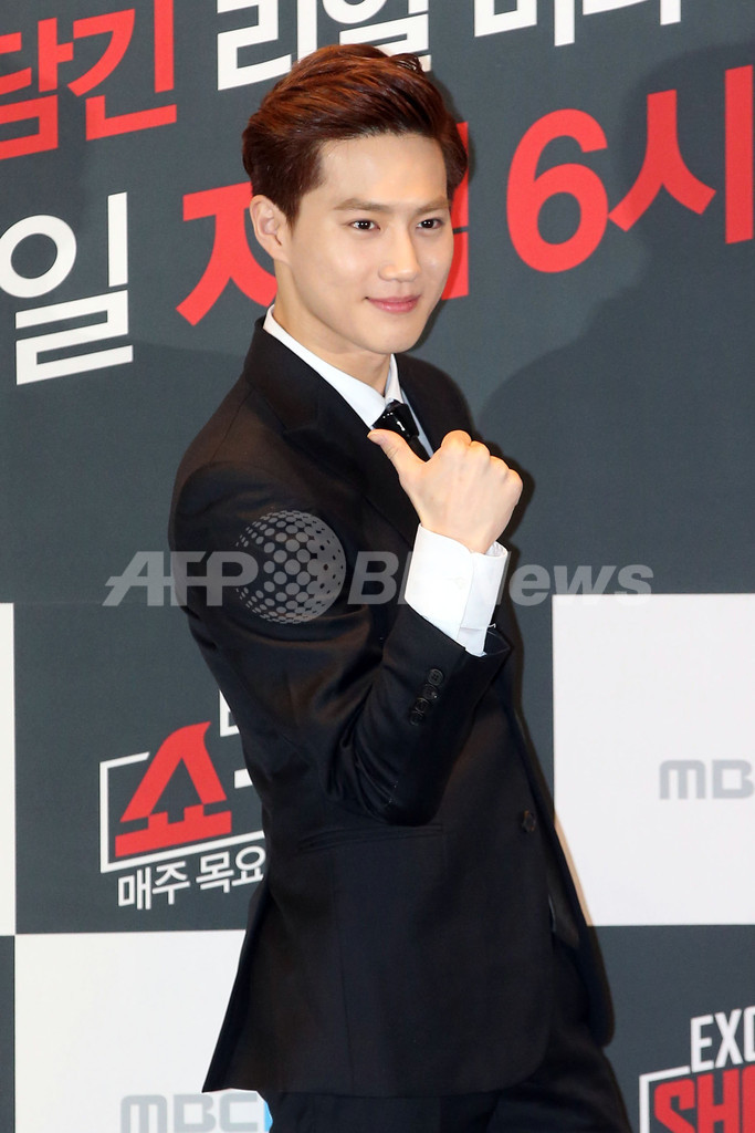 【12月2日 STARNEWS】韓国・ソウル(Seoul)のIFCモール(IFC Mall)で11月28日、人気アイドルグループ「EXO(エクソ)」が、韓国文化放送(MBC)系列のケーブルテレビ「MBC Every1」で放送されるバラエティー番組「エクソ・ショータイム(EXO's Show Time)」の制作発表会に出席した。同番組は、EXOの日常生活を紹介する内容となる予定。(c)STARNEWS