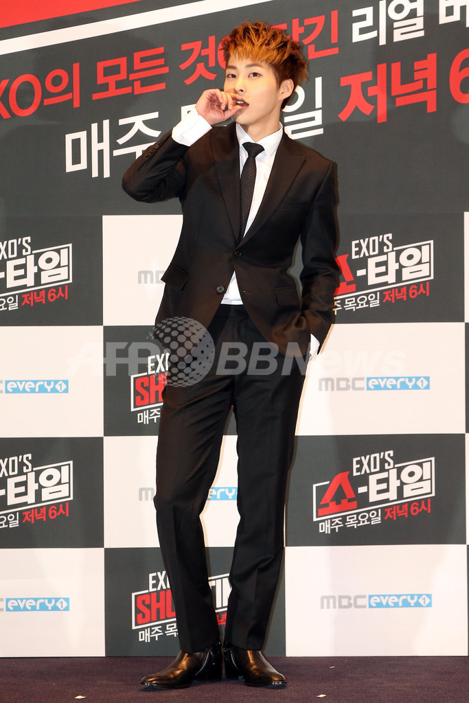 【12月2日 STARNEWS】韓国・ソウル(Seoul)のIFCモール(IFC Mall)で11月28日、人気アイドルグループ「EXO(エクソ)」が、韓国文化放送(MBC)系列のケーブルテレビ「MBC Every1」で放送されるバラエティー番組「エクソ・ショータイム(EXO's Show Time)」の制作発表会に出席した。同番組は、EXOの日常生活を紹介する内容となる予定。(c)STARNEWS