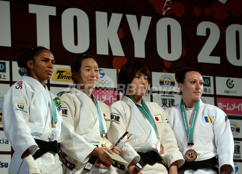 女子57キロ級では、米国のマルティ・マロイ(Marti Malloy)との決勝で一本を奪った宇高菜絵(Nae Udaka)が優勝した。(c)AFP