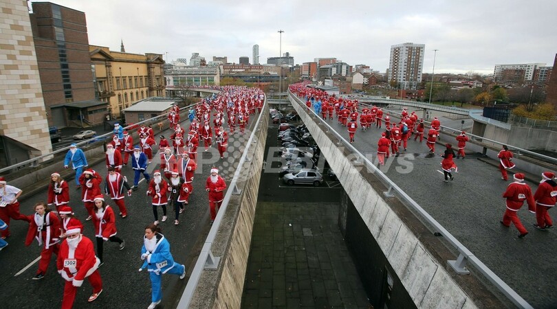 【12月2日 AFP】英リバプール(Liverpool)で1日、毎年恒例の「サンタダッシュ(Santa Dash)」が、総勢1万人の参加者を目標にして今年も開催され、サンタクロース姿のランナーたちが5キロのコースを駆け抜けた。