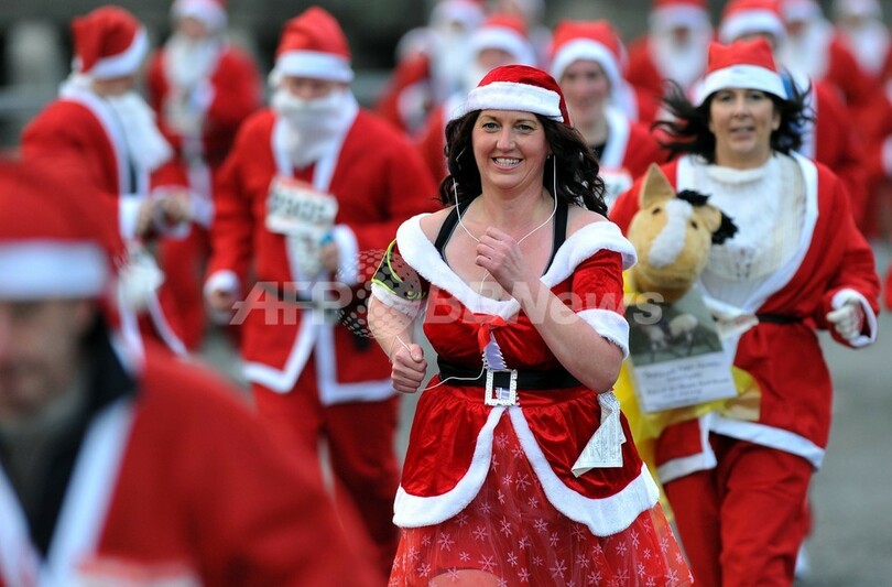 【12月2日 AFP】英リバプール(Liverpool)で1日、毎年恒例の「サンタダッシュ(Santa Dash)」が、総勢1万人の参加者を目標にして今年も開催され、サンタクロース姿のランナーたちが5キロのコースを駆け抜けた。