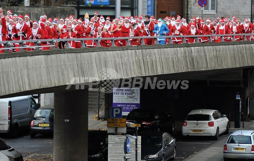 【12月2日 AFP】英リバプール(Liverpool)で1日、毎年恒例の「サンタダッシュ(Santa Dash)」が、総勢1万人の参加者を目標にして今年も開催され、サンタクロース姿のランナーたちが5キロのコースを駆け抜けた。