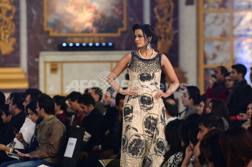 会期中には、デザイナーのErum Khanが新作を発表した。(c)AFP