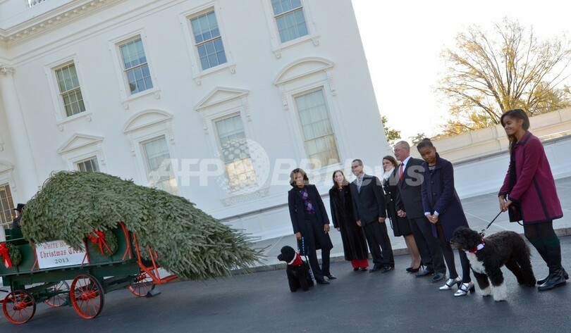 【12月2日 AFP】米ワシントンD.C.(Washington D.C.)のホワイトハウス(White House)に11月29日、今年のオフィシャル・ホワイトハウス・クリスマスツリー(Official White House Christmas Tree)が届けられた。この高さ約5.5メートルの木は、ホワイトハウスのブルールーム(青の間、Blue Room)に設置される予定。(c)AFP
