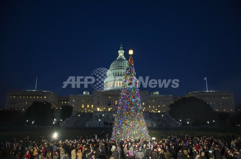 米連邦議会議事堂でクリスマスツリーの点灯式