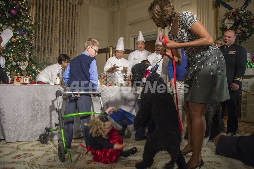 【12月5日 AFP】クリスマスの飾り付けのお披露目パーティーが開催されていた米ワシントンD.C.(Washington D.C.)のホワイトハウス(White House)で4日、バラク・オバマ(Barack Obama)米大統領一家の愛犬「サニー(Sunny)」が、出席していた2歳の女の子の目の前で立ち上がり、女の子が尻もちをつくというハプニングがあった。(c)AFP