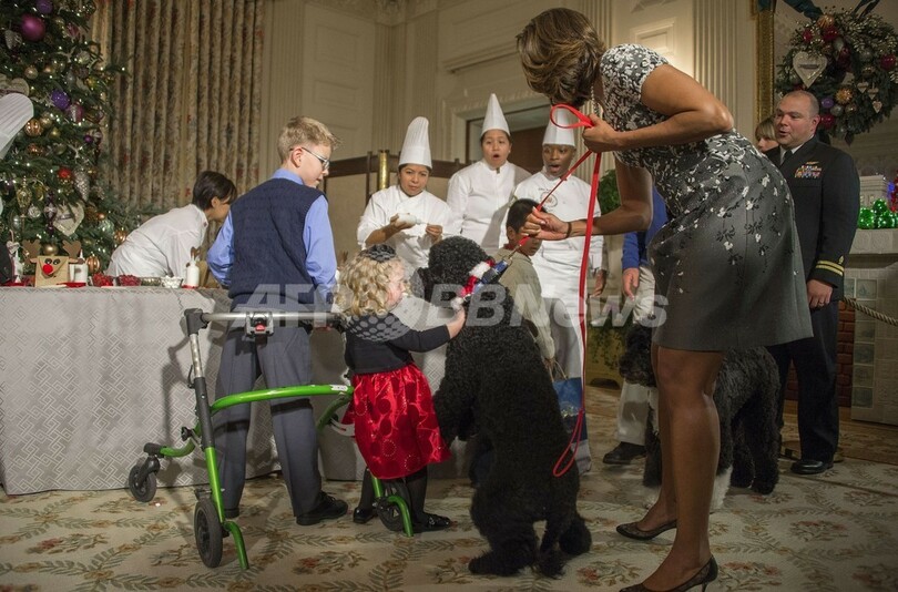 【12月5日 AFP】クリスマスの飾り付けのお披露目パーティーが開催されていた米ワシントンD.C.(Washington D.C.)のホワイトハウス(White House)で4日、バラク・オバマ(Barack Obama)米大統領一家の愛犬「サニー(Sunny)」が、出席していた2歳の女の子の目の前で立ち上がり、女の子が尻もちをつくというハプニングがあった。(c)AFP