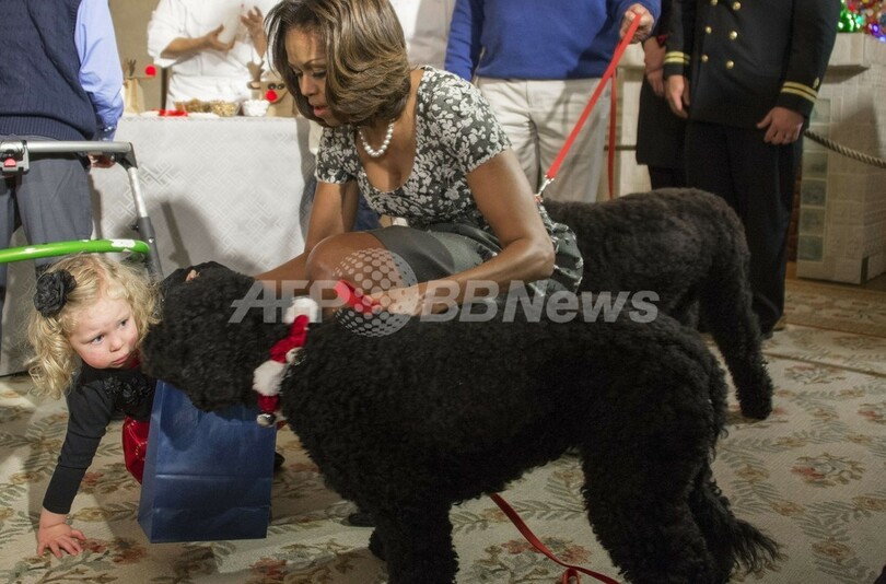 【12月5日 AFP】クリスマスの飾り付けのお披露目パーティーが開催されていた米ワシントンD.C.(Washington D.C.)のホワイトハウス(White House)で4日、バラク・オバマ(Barack Obama)米大統領一家の愛犬「サニー(Sunny)」が、出席していた2歳の女の子の目の前で立ち上がり、女の子が尻もちをつくというハプニングがあった。(c)AFP