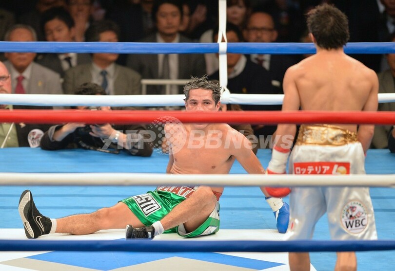 一方、タクシーの運転手を経てボクサーとなり、2007年から2009年にかけて世界フライ級王座を10度防衛したソーサは、49勝8敗(29KO)となった。(c)AFP