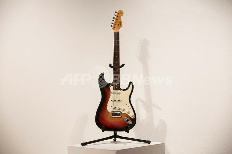 競売を主催したクリスティーズ(Christie's)によるとこのギターは1964年製の「フェンダー・ストラトキャスター(Fender Stratocaster)」。予想落札価格は30万~50万ドル(約3100万~5100万円) だった。落札者は明らかにされていない。(c)AFP