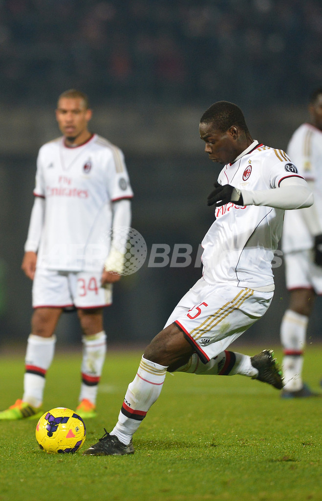 マッシミリアーノ・アレグリ(Massimiliano Allegri)監督にとって記念すべきセリエA通算200試合目となった一戦で、ミランは前半7分にカカ(Kaka)の折り返しをバロテッリが合わせ、先制点を奪った。