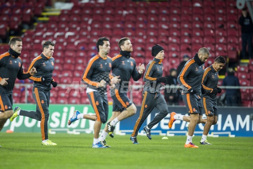 【12月10日 AFP】サッカー欧州チャンピオンズリーグ2013-14(UEFA Champions League 2013-14)のFCコペンハーゲン(FC Kopenhavn)戦を翌日に控えたレアル・マドリード(Real Madrid)が9日、最終調整を行った。(c)AFP