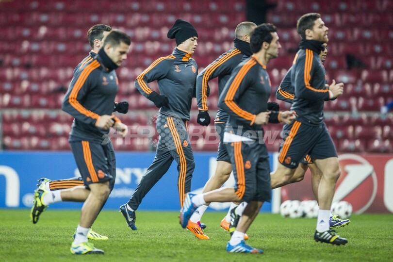 【12月10日 AFP】サッカー欧州チャンピオンズリーグ2013-14(UEFA Champions League 2013-14)のFCコペンハーゲン(FC Kopenhavn)戦を翌日に控えたレアル・マドリード(Real Madrid)が9日、最終調整を行った。(c)AFP