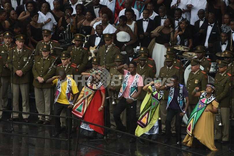 5日の死去の際には国全体が悲しみに包まれたが、追悼式は、20世紀で最も偉大な政治家の1人だったマンデラ氏の思い出をたたえる前向きな雰囲気で行われた。(c)AFP/Susan NJANJI