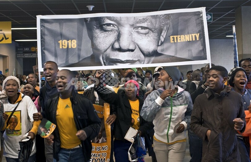 5日の死去の際には国全体が悲しみに包まれたが、追悼式は、20世紀で最も偉大な政治家の1人だったマンデラ氏の思い出をたたえる前向きな雰囲気で行われた。(c)AFP/Susan NJANJI