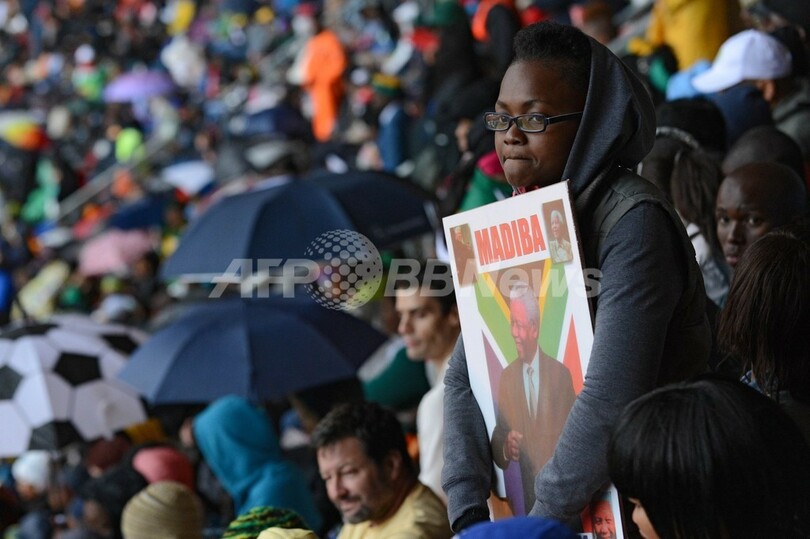【12月10日 AFP】5日に死去した世界の自由の象徴、南アフリカのネルソン・マンデラ(Nelson Mandela)元大統領の追悼式が10日、南アフリカのソウェト(Soweto)のスタジアムで、雨の降るなか執り行われた。追悼式には各国首脳や王室関係者の他、南アフリカ市民数万人が出席した。