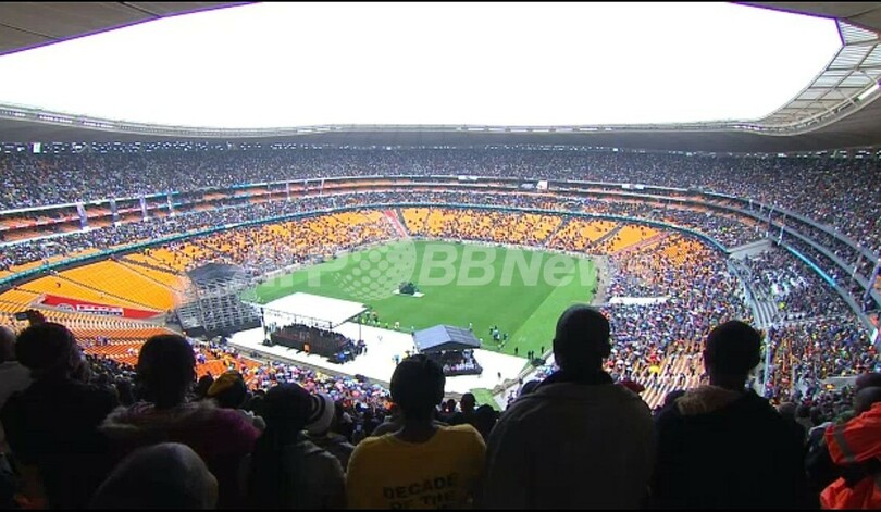 10日正午(日本時間同日午後7時)、南アフリカ国歌の演奏とコーラスで追悼式は幕を開け、スタジアム全体が合唱した。