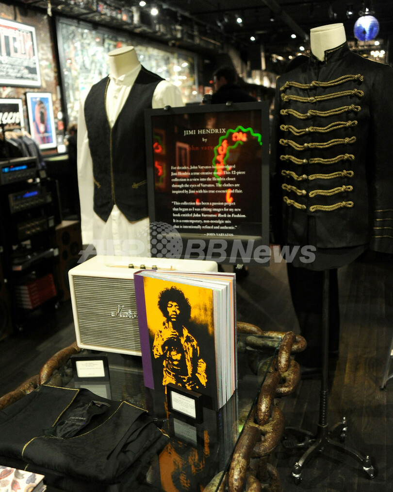 【12月12日 AFP】デザイナーのジョン・バルベイトス(John Varvatos)がギタリストのジミ・ヘンドリックス(Jimi Hendrix)にオマージュを捧げたカプセルコレクションを発表した。これを記念して、米ニューヨークで10日、ローンチイベントが開催された。(c)AFP/Getty Images